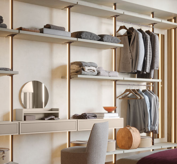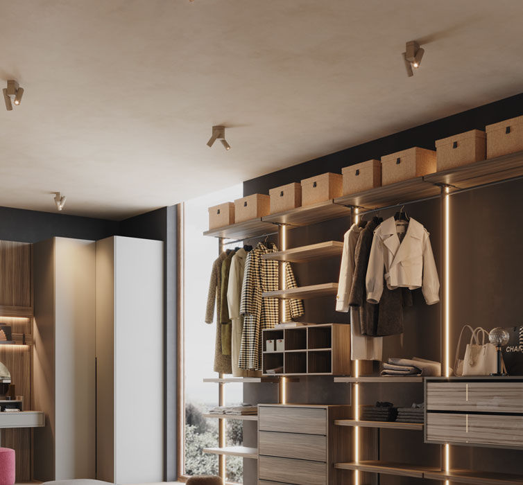 Le nostre cabine armadio non sono semplici spazi per riporre, ma veri progetti sartoriali. Studiamo ogni centimetro in base alle tue abitudini e al tuo stile di vita, proponendoti tre tipologie principali: con montanti, a boiserie o a spalle.